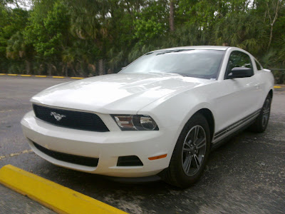 Floridassa oli tilaisuus ajella kolme päivää uuden Mustang 2013:n perusmallilla,jossa aiemmin oli 201 hp. Nyt auto tuntui kumman tehokkaalta ja todellakin, kannen alla oli uusi 3,7 l V6, jossa 305 hp! Tästä siis lähdetään, huippumallissa Mustang Shelby GT 500 on 800 hp ja sen voi vielä tehtaalla tuunata tasan tuhanteen koniin. Näitä ei tehdä kuin tilauksesta joku 30-40 kpl. Tehokkain Mustang, jota meikäläinen on Floridassa viime syksynä ajanut, on Shelby GT, jossa tasan 400 hp. Kuva yllä viime viikonvaihteen 305-heppaisesta.