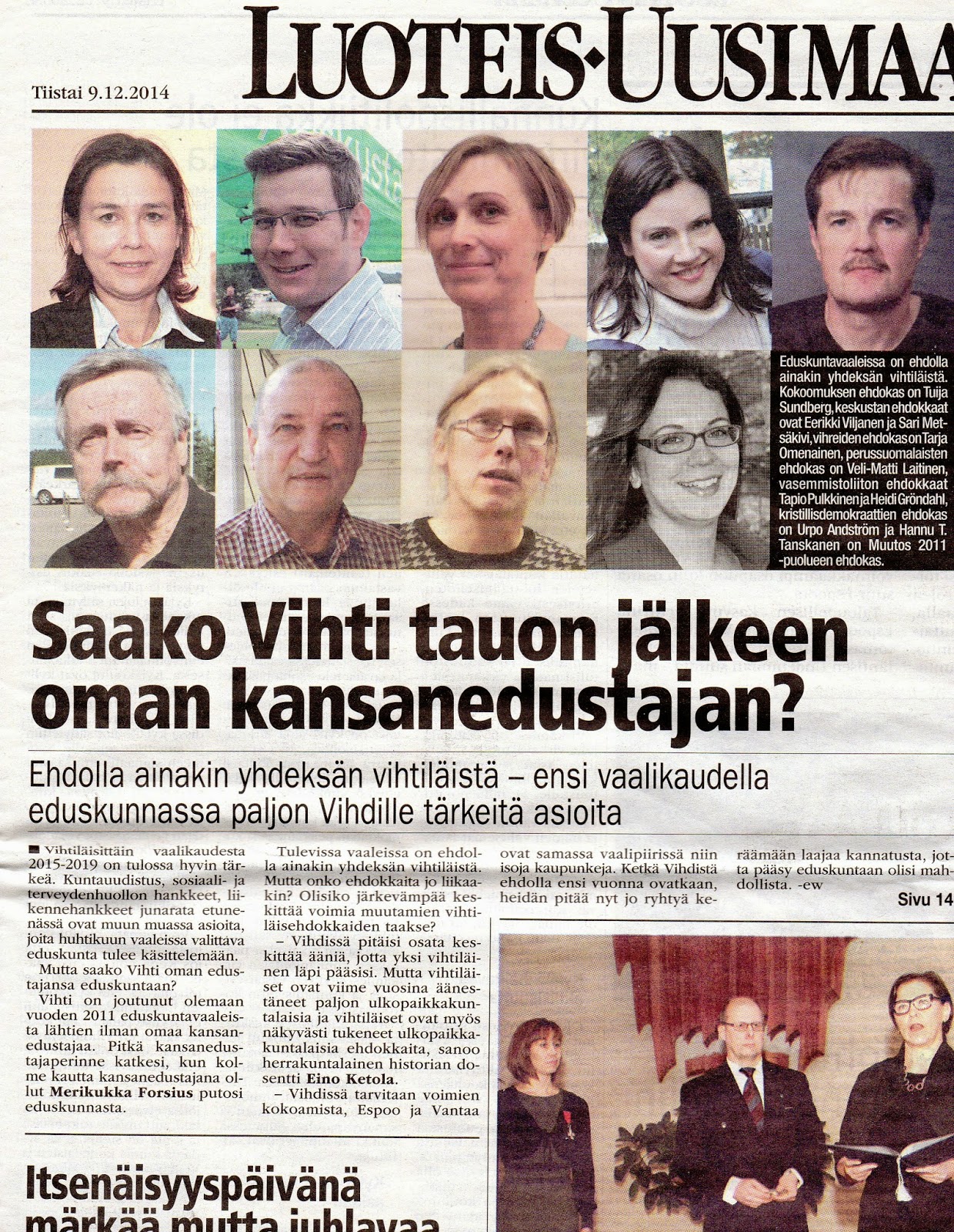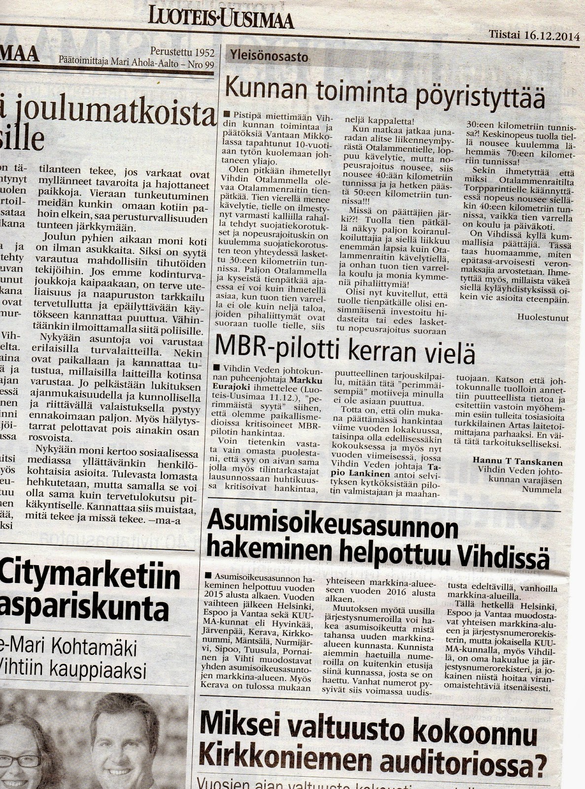 Vastasinpa herra johtokuntamme puheenjohtajalle. Tässä parempi kuva sivusta: Luoteis-Uusimaa tänään